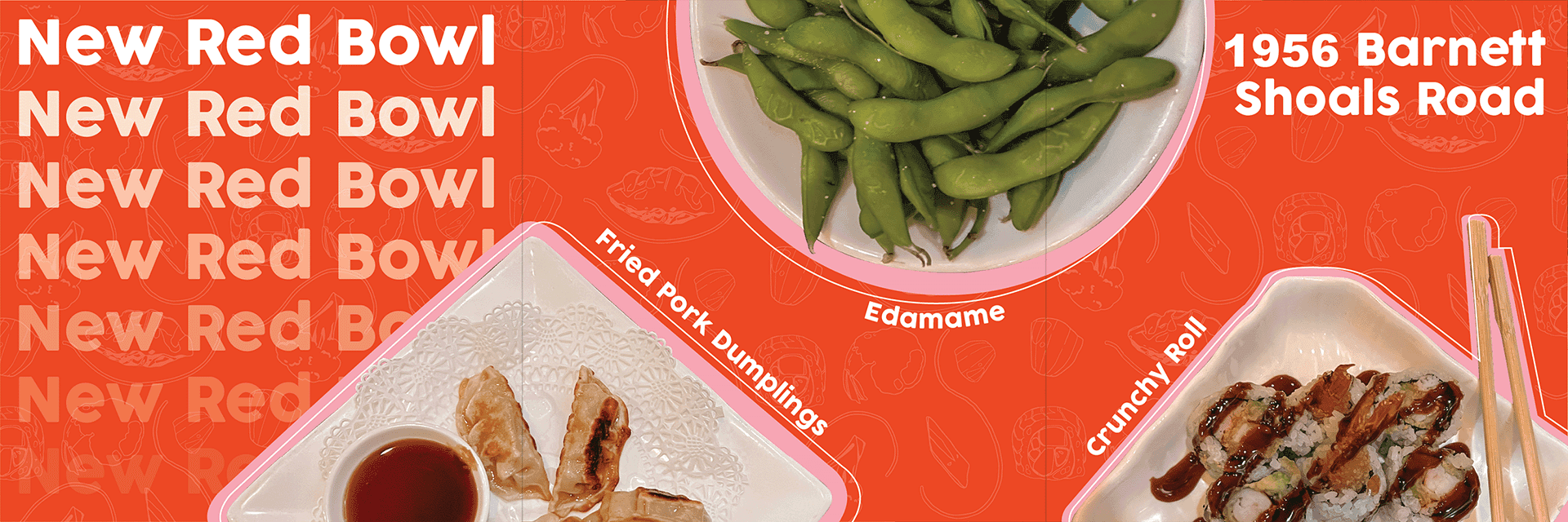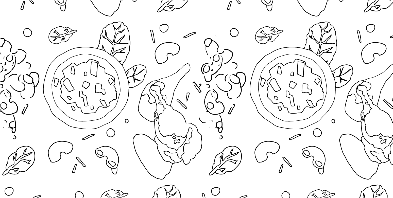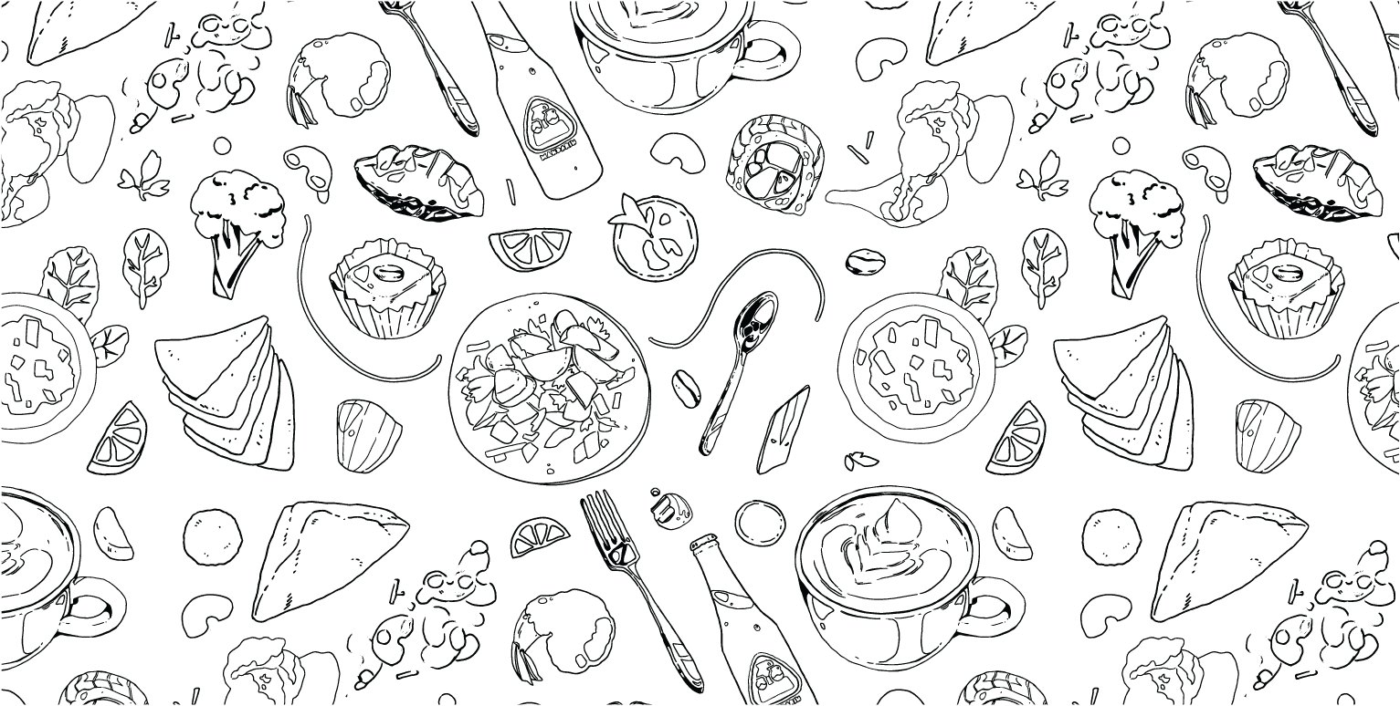 Patterns were used as a decorative element for the background of our posts. I composed the patterns using illustrations of various menu items from each restaurant drawn by Anela Leide.