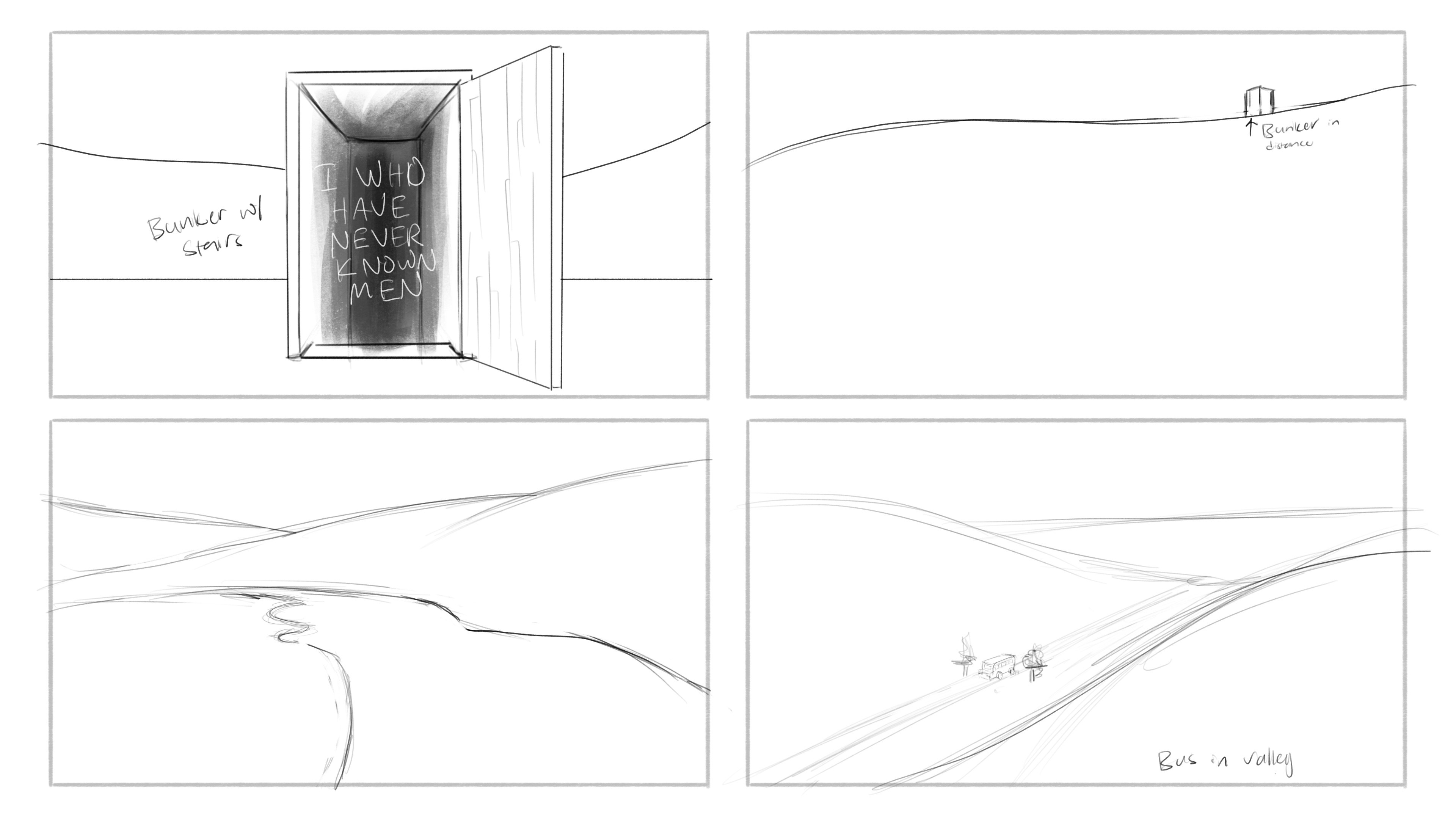 Similar to the novel, it was important that landscape felt like it could go on forever. The monotony that comes with repeating hills with little change is what drives much of the book's visual language and reinforces its themes. There is helplessness, but there is also freedom.